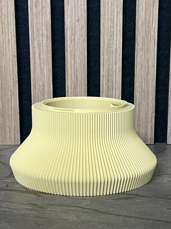 Breng warmte en rust in je interieur met Lamp Nori — een elegante 3D-geprinte lamp die minimalistisch design combineert met zachte ribbelstructuren.